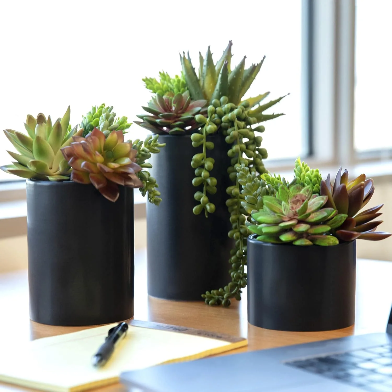 Measuring 8.2"D x 8.2" W x 4.7"H, this versatile size fits a wide variety of indoor flower pots needs, from desks to shelves, making them exceptional interior plant pots.